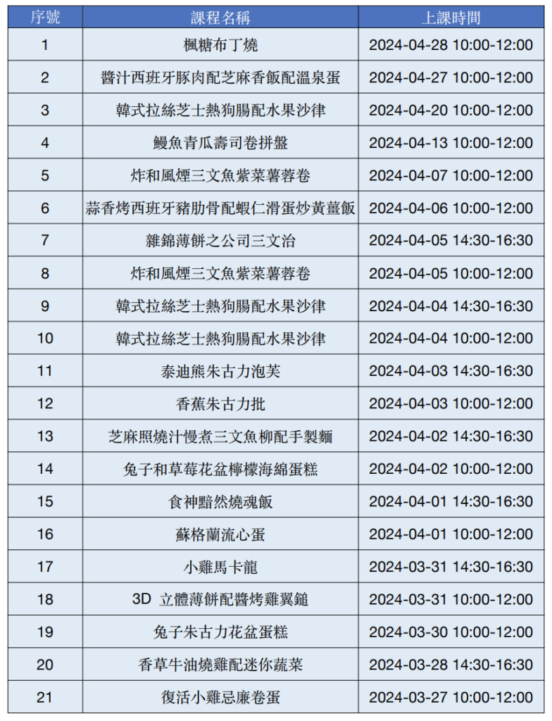 * 課程內容會不定期在約課系統進行更新,最終時間表以系統內為准