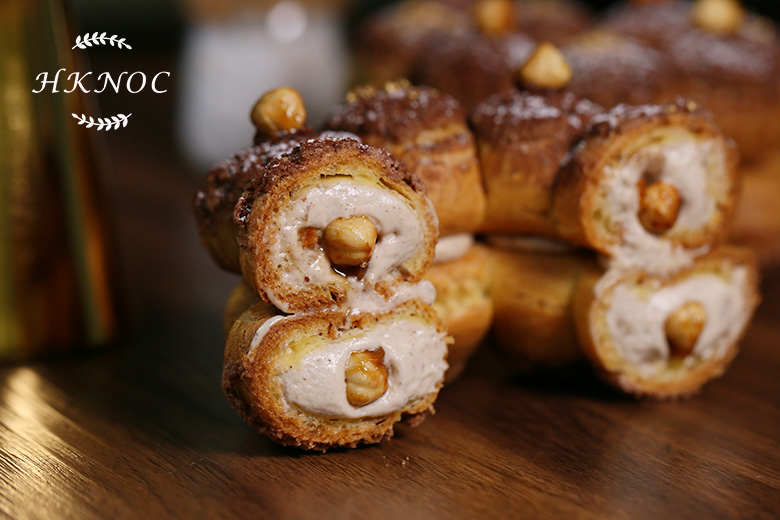 泡芙麵糊製作技巧、香脆表皮麵團製作技巧、海鹽焦糖醬烹煮技巧、榛子果仁忌廉打法技巧。
