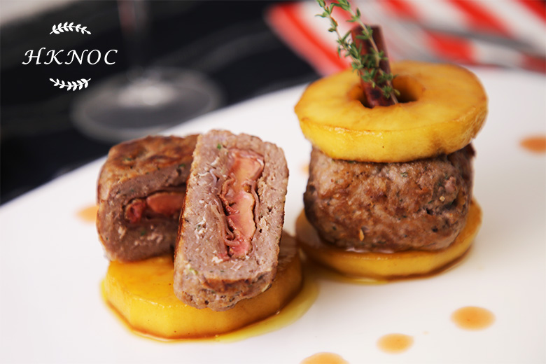 煎漢堡扒釀鴨肝配甜醋燉蘋果 Braised Apple Beef Burger Stuffed with Duck Liver 簡介:口感綿密滑順一入口,傳統漢堡扒製作方法, 加入鴨肝高檔食材,再配合獨特酸甜清爽蘋果中和鴨肝油膩感,奢華卻又親民,讓菜餚口感得到升華。學習重點:漢堡扒製作方法、釀鴨肝技巧、如 何燉蘋果及油溫控制。 課程內容:課時:約 2小時語言:粵語/English/普通話提供詳細食譜、食材、相關用具及圍裙建議學員自備食物盒 難易度: 4/5 報名詳情: 請致電+852 2656 2727查詢。 如要預約課程、取消課程或更改課程時間須在48小時前通知。 報名後請參閱付款方法及學員須知。