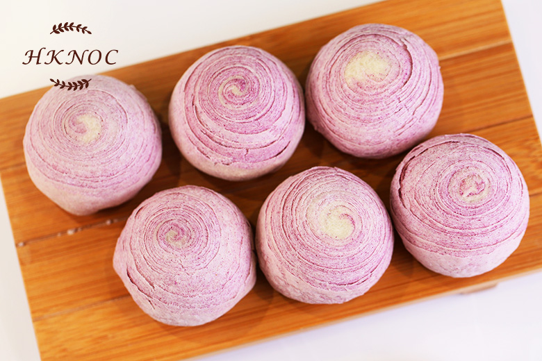 台式中秋節日食品,採用中式酥皮製作方法,中包健康美味的紫薯餡包含著芋頭餡,最外一層油酥包裹內,成品色澤吸引,層次分明,不僅鍛煉手工技巧,也是健康美食愛好者的不二之選。