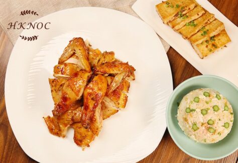 酒香桂花烤雞配蛋白魚鬆炒飯