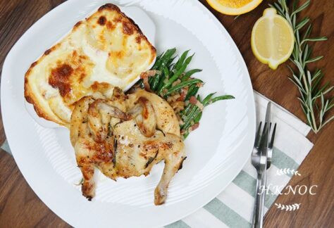 檸檬香草烤春雞配奶油焗薯片