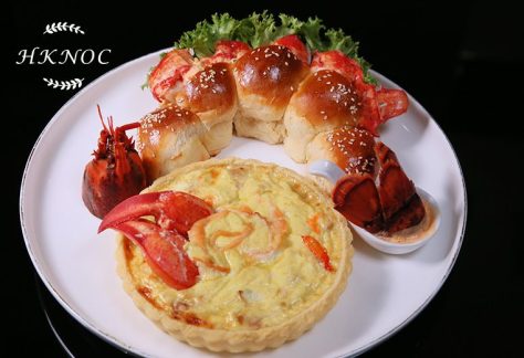 手工麵包配鮮嫩活龍蝦 + 煙三文魚蟹肉龍蝦膏蛋批