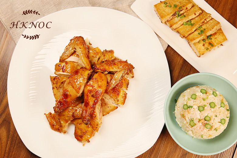 酒香桂花烤雞配蛋白魚鬆炒飯