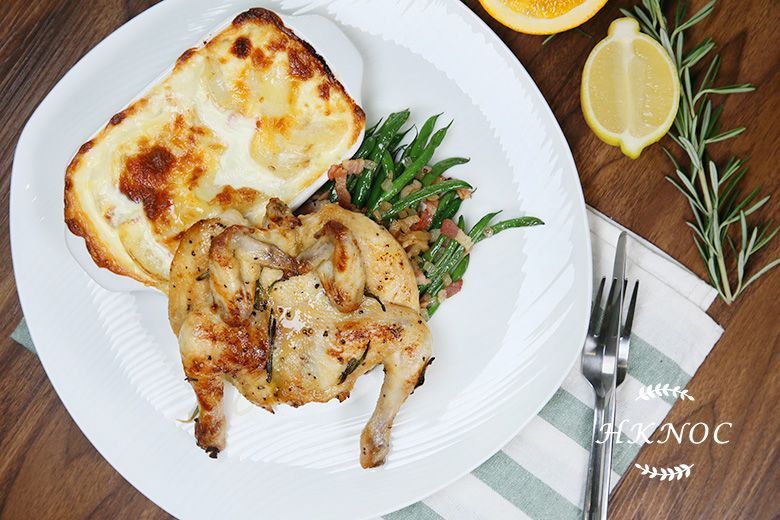 檸檬香草烤春雞配奶油焗薯片