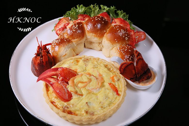 手工麵包配鮮嫩活龍蝦 + 煙三文魚蟹肉龍蝦膏蛋批