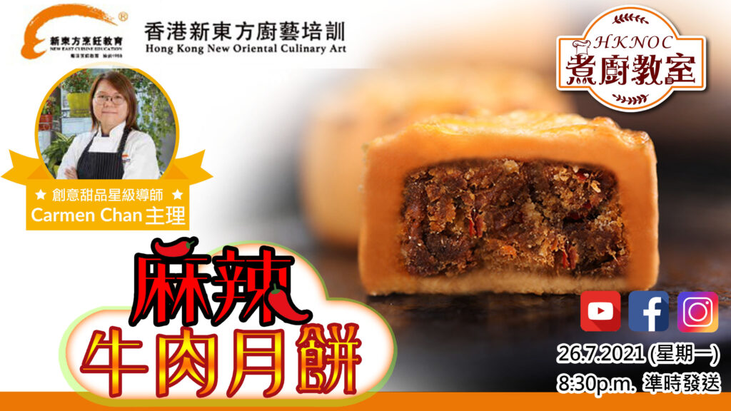 說起四川的麻辣火鍋,喜歡吃麻辣火鍋的你一定口水大流。今次由香港新東方廚藝培訓 創意甜品師 Carmen 親自示範 既有四川風味,反轉傳統的《麻辣牛肉月餅》,一眾麻辣愛好者的必定喜愛這款月餅。