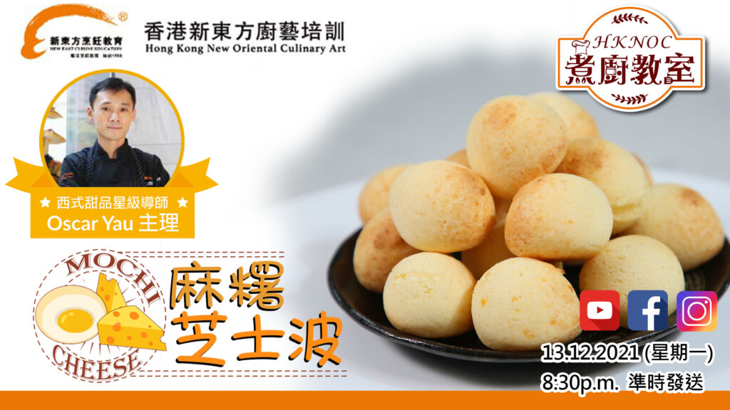 【煮廚教室】由香港新東方廚藝培訓 西點導師 Oscar Yau 為大家教授一個非常經典易學的甜點小食,簡單程度亦非常適合親子在假期時,一起製作,一起享用,煙韌Q彈的《麻糬芝士波》, 作為很多人的童年小食, 一定可以令你懷念一翻。